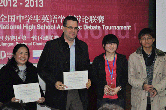12月1日至2日,全国中学生英语学术辩论联赛江苏区域的第一轮比赛在我校举行,正式拉开2012-2013年度的全国中学生英语学术辩论联赛帷幕。