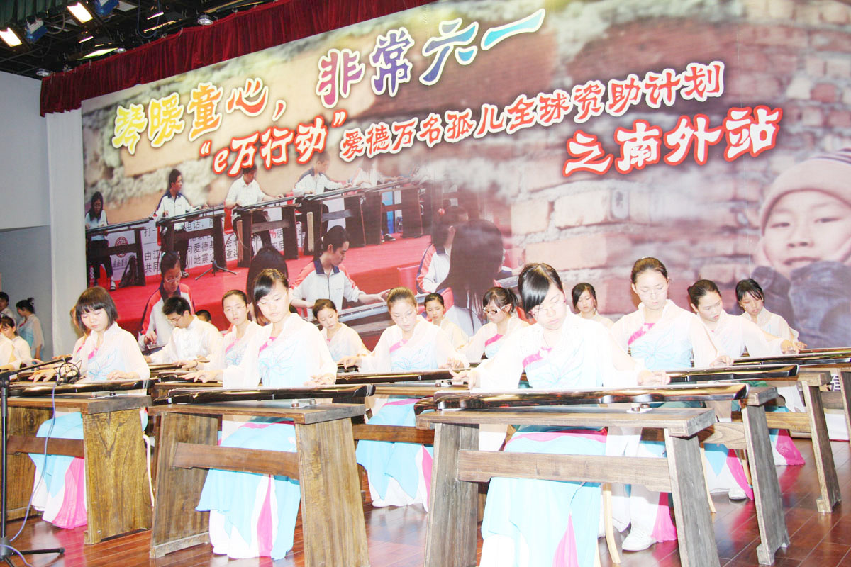 6月1日下午,爱的基金会万名孤儿全球资助计划来到我校,我校百名学生接受专业老师为期三个月的古琴培训,在传承中国传统文化的同时,并将捐赠此次行动的部分收入,以帮助我省家庭经济困难儿童解决生活和学习困难。除了举行古琴演奏活动外,初一年级还进行了文艺演出,庆祝六一儿童节。