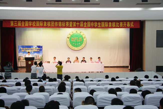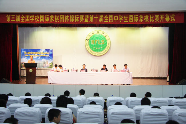 7月16日上午,由中国象棋协会主办、南京外国语学校承办的第三届全国国际象棋学校团体锦标赛暨第十届全国中学生国际象棋比赛开幕式在我校报告厅隆重举办。开幕式上董正璟校长致开幕词,他对中国国际象棋协会、中国中学生体育协会的领导们的到来表示诚挚的欢迎和感谢,向参加比赛的选手们表示最热烈的祝愿,向辛勤的老师和教练们表示最真挚的问侯,同时祝愿2009年全国中学生国际象棋比赛取得圆满成功。 开幕式结束后比赛正式开始,本次比赛来自全国各省市的330名国际象棋高手将展开激烈的角逐,让我们拭目以待。 |
