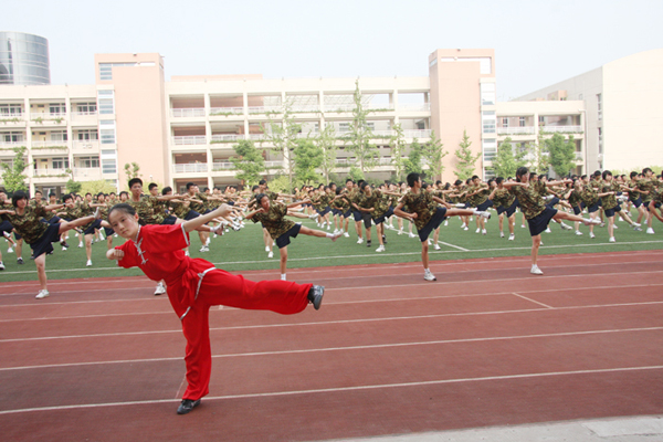 同学们经过刻苦的训练现在已经身手不凡了,一招一式都有模有样了。 |