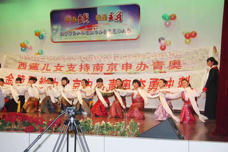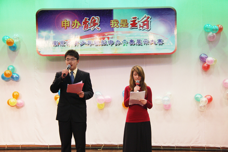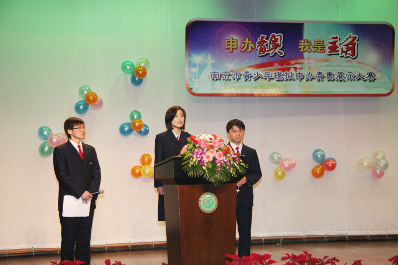 比赛开始之前,团市委副书记郑玲玲致辞。郑书记希望同学们以“永远争第一”的信念,赛出风格,赛出水平,向全国、全世界青少年展示南京市青少年的精神风貌,为南京申办青奥加油。 比赛分为申办陈述环节、DV展示环节和互动提问环节三部分。选手们从南京优秀的历史文化传统、优美的人居自然环境、优良的城市人文素质、优异的体育竞技成绩等各个方面,以青少年视野,为南京申办青奥进行了陈述,并展示了同学们自己动手制作的各具特色的DV。 此次比赛我校选出高三年级的陈乾、智奥亮和高澍雨三位同学,他们分别模拟南京市市长、国家奥委会官员和青少年形象大使,在比赛中用英语进行申办陈述,高一和高二年级的部分同学组成亲友团观摩此次比赛并为我校选手助威加油,校园电视台热情参与并制作了参赛DV。同学们通力合作,发挥各自的优势,在比赛中赢得现场评委和观众的一致好评。经过紧张角逐, 我校和金陵中学、江苏教院附中代表队等3个代表队获得一等奖,同时还获得了最佳陈述代表队、最佳DV制作代表队2个单项奖。 比赛后,金陵职教中心的藏族青少年朋友们现场为观众们表演《青春踢踏》,向南京市青少年展示了藏族青少年们用汉、藏两文字签名的参与、支持南京申办青奥的祝愿。 模拟申青奥比赛,让青少年亲身参与申办青奥,增强了百万青少年对于“让奥运走进青年,让青年拥抱奥运”申青奥理念的理解和认同,表达了对2014年第二届青奥会的热烈期盼。 |