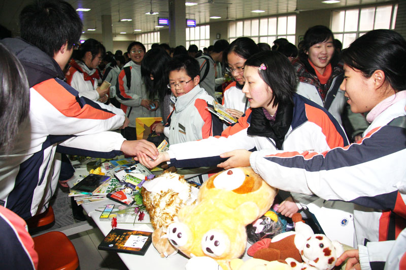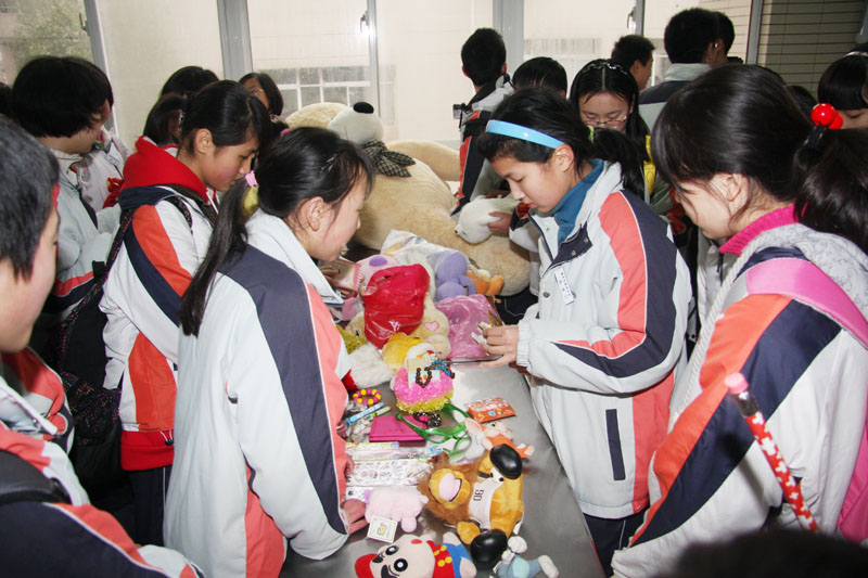 通讯员 高一(6)班 胡紫薇 3月5日下午,我校一年一度的爱心义卖活动在二楼食堂如期举行,同学们从家中带来了小玩具,旧的书籍,杂志等物品进行义卖,各班把商品摆放在小摊位上,吆喝着,呼喊着,高举着海报,甚至有的同学拿着物品边走边推销,还有的打出了“全场五折”的旗号,十分热闹!最后同学们把义卖得到的钱全部捐给爱心基金会,献上了自己的一份爱心! |