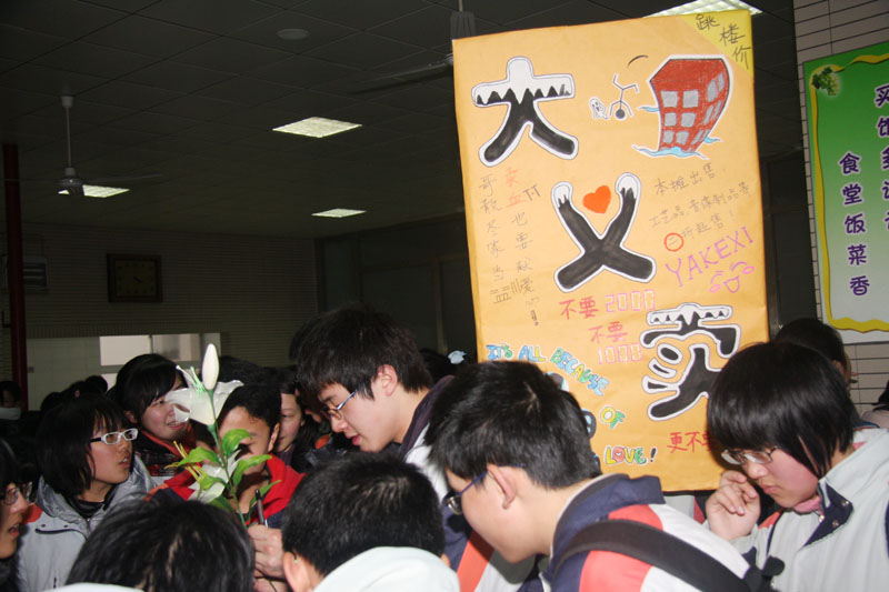 高三的同学们将复习资料拿出来进行爱心义卖 |