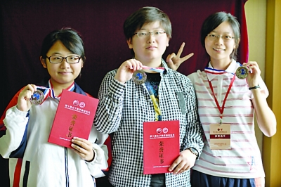 谈海慈、金晓晗和叶欣3位女生都是南外高三(1)班的学生,是学校奥数竞赛的“三朵金花”,这次作为南京市学生代表参加第10届中国女子数学奥林匹克竞赛,一举获得了三枚银牌。“女子奥数比赛真的很温情,比赛一共有两天,每天都是半天比赛,剩下的就是搞活动。考试非常轻松愉快,为了淡化竞赛氛围,试卷都是五颜六色的。卷子有红色、黄色,草稿纸是绿色,答题纸是白色的,考试期间老师还给我们发吃的喝的。另外因为是女子比赛,组委会还专门举办了女孩子盛会,有各种各样的活动。”叶欣告诉记者,为了丰富参赛选手的生活,培养她们的创造能力和团队合作精神,组委会还特安排了女子健美操比赛,以检测各参赛队的综合素质和精神面貌,最后南京市代表队还获得了健美操比赛一等奖。“我们都是小学就开始学奥数的,不过我认为女孩子学数学学不好是一种误解。”谈海慈告诉记者,自己就对奥数充满了兴趣。“我小时候就喜欢看福尔摩斯的故事,我觉得解奥数题就像破案子,根据线索寻找答案,十分好玩。”
