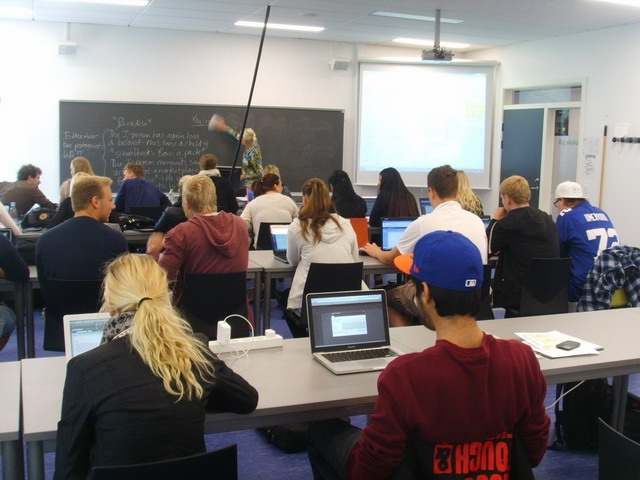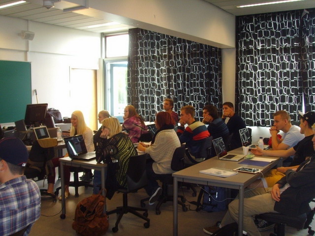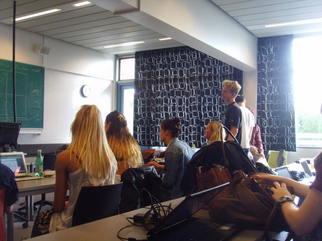 我在该校主要教授中文学科,并广泛参与了历史、英语、营销学、经济学和体育等课程。这里以90分钟为一课时,教师将大量时间交给学生参与实践活动或分组讨论问题,一般的,教师使用前后各十到十五分钟进行讲解,并与学生问答,其他时间学生根据教师指导进行自学,学生可以去教室外进行小组讨论学习。几乎在任何一门课上,所有学生都能积极地参与课堂活动,想说话随时可以举手,如果老师不理睬,学生会一直高举手势。学生具有较高的自学能力,能够高效的利用书籍、网络找到自己需要的答案。分组学习后,教师常常安排小组汇报,学生们在小组学习的时候貌似不那么紧张,但是汇报的时候每个学生都能说出一大套自己的见解和小组研究的成果,这说明他们的学习效率是比较高的。丹麦学生的作业比较少,虽然丹麦老师仍然会在每节课的最后环节布置作业,但是他们布置的作业大多是对本课的复习或者是朗读或者阅读,很少有繁复的操练。当然丹麦的学生并不因此而荒废学业,有时候准备课堂展示的作业需要大量的资料查找,筛选和整理的时间和精力。这反映了丹麦教育的不同理念,即让每一个人以适合自己的方式成长,成为适合自己性格能力的有用的人。