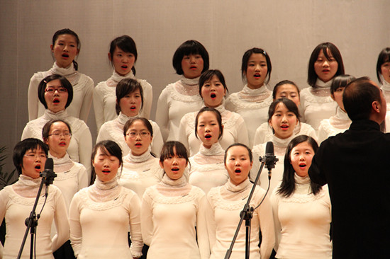 合唱比赛,叶军老师担任指挥,天气虽冷,同学们的热情却洋溢整个会场!
