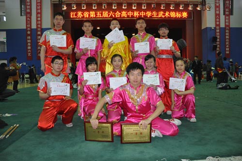 在上周刚刚结束的2012年“六合高中杯”江苏省第五届中学生武术锦标赛中,我校武术队参加了长、南拳,长、短器械,传统器械等五个单人项目,集体拳术、棍术等两个集体项目,经过队员在场上的努力拼搏,最终取得了三个单项第一名,两个单项第四名,集体项目全部取得了一等奖,这是我校武术队自参加省中学生武术比赛以来,取得的又一重大突破。另外我校还获得了体育道德风尚奖,取得了比赛成绩与精神文明的双丰收。具体如下: