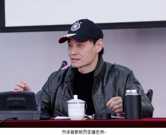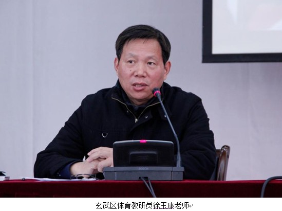 首先在报告厅举行会议,会议由市体育教研员李建老师主持,他对南外近年来的体育工作成果做了充分的肯定。周弋副校长对大家的到来表示感谢,对我校体育工作成果也非常认同,同时也对我校的体育工作提出了更高的要求;体育教研组组长张僖老师对李建老师及相关领导把本次教研活动安排在我校表示感谢,然后从体育与健康选项课教学、体育选修课教学、校园体育活动以及校园体育竞赛和训练等几方面,把我校高中体育与健康选项课教学和校园体育文化建设向大家做了详细的介绍,让大家对南外高中体育与健康选项课教学和校园体育文化建设有一定的了解;玄武区体育教研员徐玉康老师就玄武区执行国家学生体质健康标准要求等相关情况向大家做了介绍,也向大家介绍了玄武区体育工作的先进经验。