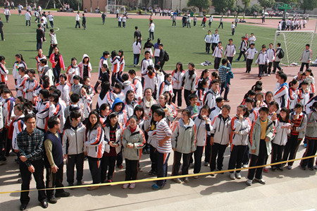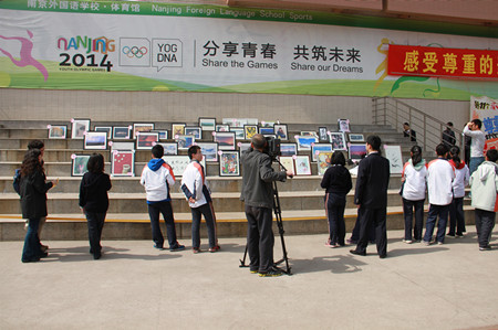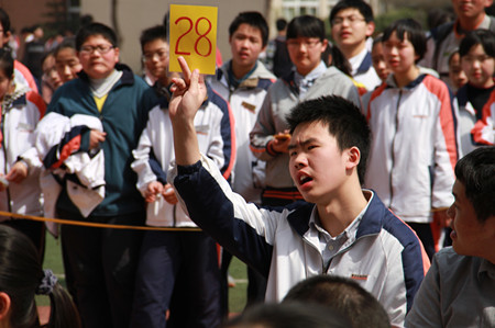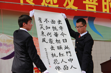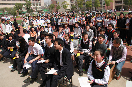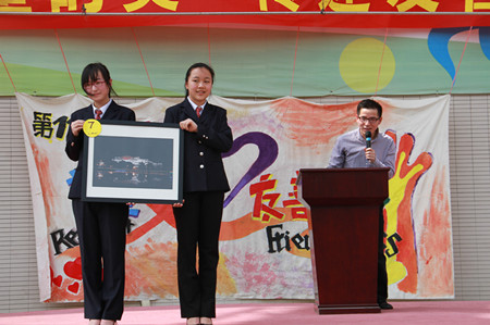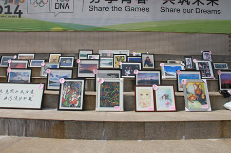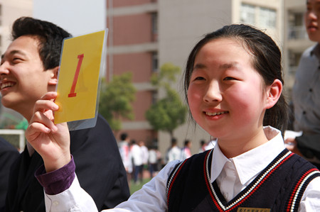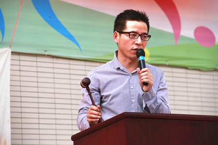 3月8日中午的南外操场格外热闹,20件师生艺术拍卖品以及36件师生艺术展销作品放置在主席台上,当音乐响起,全校师生从四面八方赶来现场,就连操场上原先踢球的同学们也被吸引了过来。今年的阳春三月已是骄阳似火,当担任拍卖师的曹启海老师开始介绍拍品并宣布拍卖开始时,现场温度更是迅猛上升。