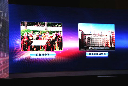 我校学生代表与黎巴嫩学校学生代表现场连线(上图)