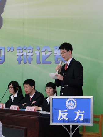 对方一辩开场破题立论,很有气势,给我方辩手增加了不少压力。但是我方辩手个个都拥有绝佳口才以及过硬的心理素质,在沉稳的论述中一一反驳对方的观点。对方辩手甚至引用我校校训试图攻破我方论点,但是我方辩手凭借强大的思辨能力与辩论技巧巧妙化解对方一个又一个的刁钻问题,并不断紧抓辩题关键,向对方辩手连连发问,使对方措手不及,使得我方辩手在中后期的辩论中逐渐占据上风。经过最为激烈的自由辩论环节,我方优势明显体现,并最后以表现极其出色的四辩陈霄科同学的总结陈词完美结束了我方陈词论述。