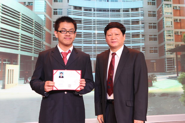 接着,各位同学以班级为单位,按学号上台领取毕业证书,并一一与 董校长 合影留念。全体同学以唱校歌的方式结束了庆典。