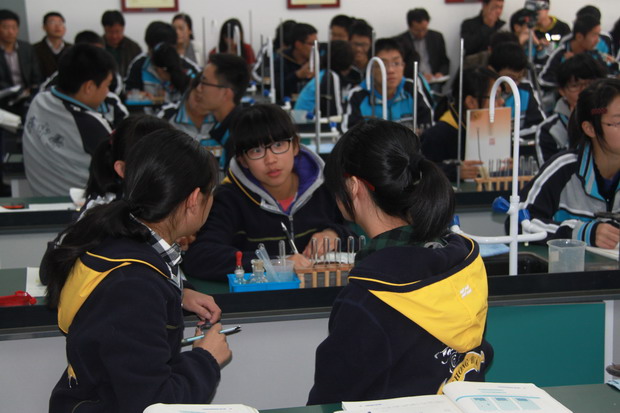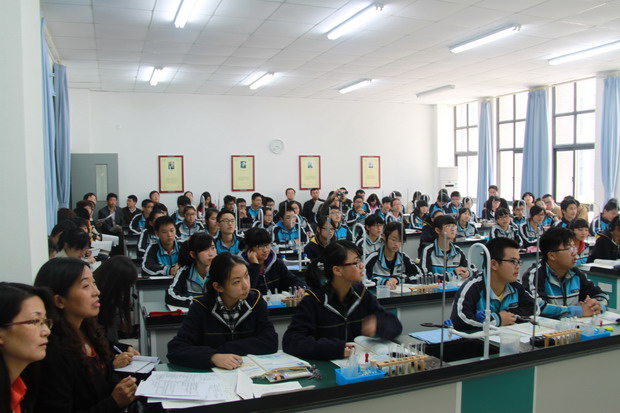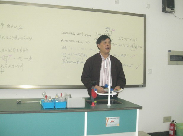 南京外国语学校的陈静老师和南京市中华中学的陈珂老师就高中化学必修1第二章第二节《离子反应》展开了同课异构。南京外国语学校化学教研组长、特级教师陈懿老师对两节课进行了精彩的点评,并就新课程理念下高中化学教学的有效实施展开了讨论。陈懿老师指出,这两节课设计思路不同,但都秉承了新课程理念,重视化学观念的构建,重视教师的主导作用,突出了学生的主体地位;有效地开展了实验探究教学活动。中华中学化学教研组长冯建龙老师作了《青年教师的专业成长》专题讲座,从思想、知识、能力等多角度多层次分析,帮助青年教师实现专业成长的高速、高效、高质。