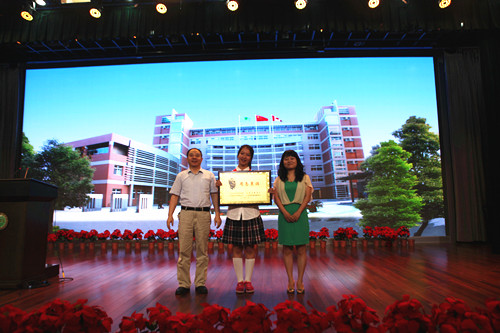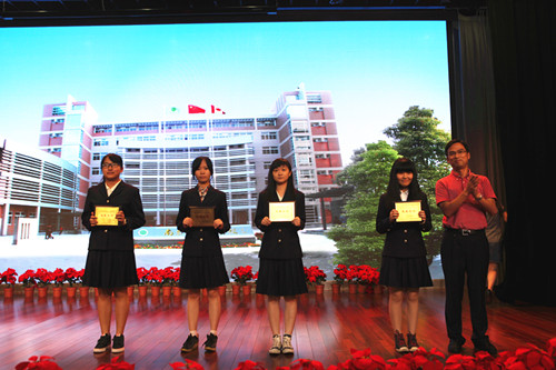 胡校长、王校长、周校长、连书记为校先进班级颁发奖状