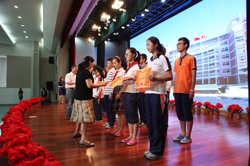 黄:很荣幸能作为2014届初一新生代表在此发言,心里无比激动。
