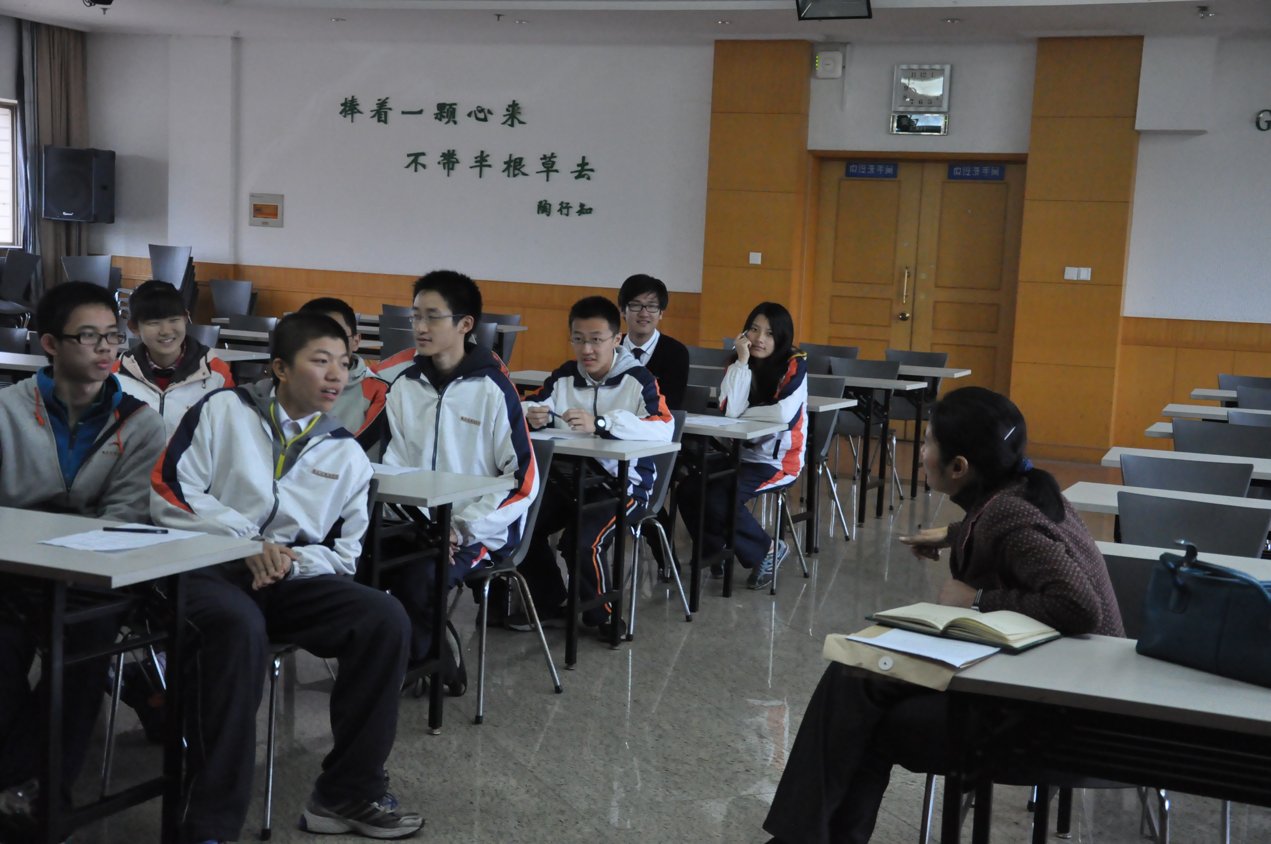 20121122日下午,由中国教育科学院课程中心杨九诠主任中国教育科学研究院科研处副处长王小飞博士、中国教育科学研究院科研管理处方铭琳博士等组成的专家调研组来到南外,进行课题实施情况的调研。南外董正璟校长、教科室朱善萍主任、学生处的吕燕主任、校团委尹荷蓉书记、教学处孙春红主任以及各教研研组长和课题研究负责人。调研的主要内容包括:听取学校领导的汇报、对南外学生的调查、听取教师代表的介绍以及专家与南外教师的交流。