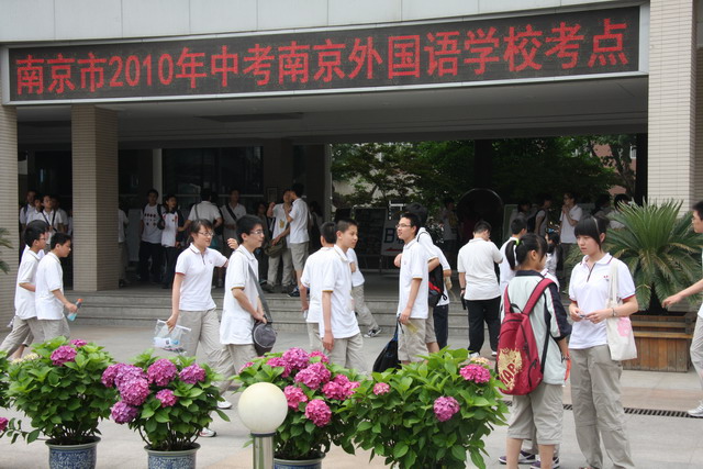 2010年6月16日至19日,来自玄武区各个学校的千余名考生在南京外国语学校考点参加了南京市2010年中考。本次南外考点共承担了41个考场工作,按照招办要求安排监考教师及相关工作人员进行严格的考前培训,考场安排设计合理,考试过程严谨,考生从进考场、考试,到交卷,监考教师从领卷、监考、到收卷、交卷,都严格按照招办规定的流程进行,并能够及时的处理学生在考试过程中的突发事件,圆满地完成了本次考点相关工作。按照考前培训的要求,监考教师对考生饮水瓶的摆放等细节考虑全面,尽理避免引患发生;此外,我校校医为发高烧的学生准备药品、温水,仔细询问病情,反复叮嘱,使其更舒适地完成考试;对手指骨折的考生,该考场按招办要求适当延时,使其能顺利地完成考试,体现了我校对所有考生的热情关怀。预祝所有考生取得理想的成绩!