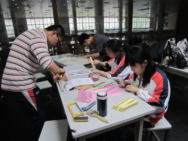 从科技周开始,A楼一楼大厅出现了十几块科技互动展板,磁动转盘,没有连接的大转盘,居然能带动小转盘不停的转动,时而还会不服从的停顿一下;勾股定理三个互为联系的沙盘,凝聚了同学们的观察和思考;手电池不断地吸引着老师和学生试一试自己的电流强度有多大,在讨论着各人电流不同的原因;数理竞赛中的最速降线,2个同时出发的铁弹子不断向同学们展示着最速降线的神奇,思考着在建筑上古代人的成功应用;自动路灯的自己设计参数和实验效果,让控制和节能行动进入了同学们的思考;数字电路在计数上的应用,神奇的光的现象,神奇的电弧现象,神奇的电磁现象,还有那不用按键的无弦琴的鸣曲,无一不吸引着同学们热爱科技,探究科技,同学