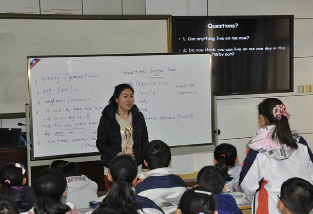 李娜老师开设的是听说课《shopping》,庄晶晶老师开设的是阅读课《the moon》。课后两位老师分别向听课老师们介绍了她们的教学思路,李爱云老师对两节课做了精彩点评。