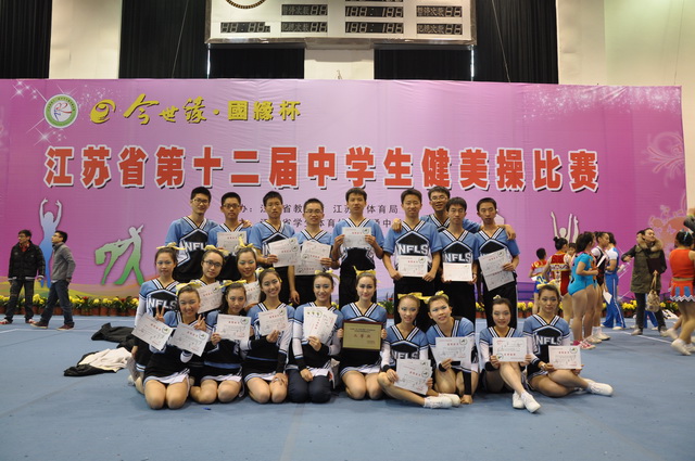 南京外国语学校健美操队在参加2012年江苏省第十二届“今世缘.国缘杯”中学生健美操比赛中,荣获高中组啦啦操规定套路(技巧)第三名,高中组啦啦操自编套路(技巧)第四名,团体第二名二等奖,同时荣获“体育道德风尚奖”。