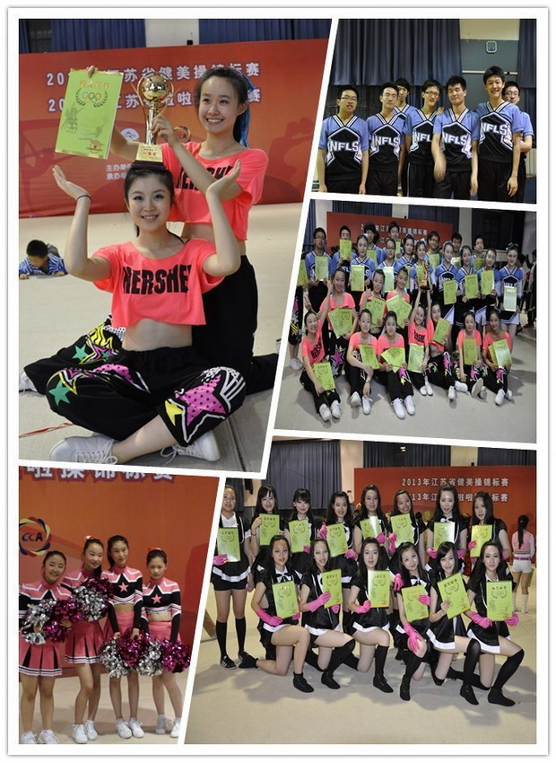 612日举办的江苏省健美操、啦啦操锦标赛中,我校啦啦操队取得了中学组团体一等奖,中学组爵士三级比赛中获得第一名,中学组技巧二级比赛中获得第二名,中学组街舞二级比赛中获得第二名,中学组花球一级比赛中获得第三名。