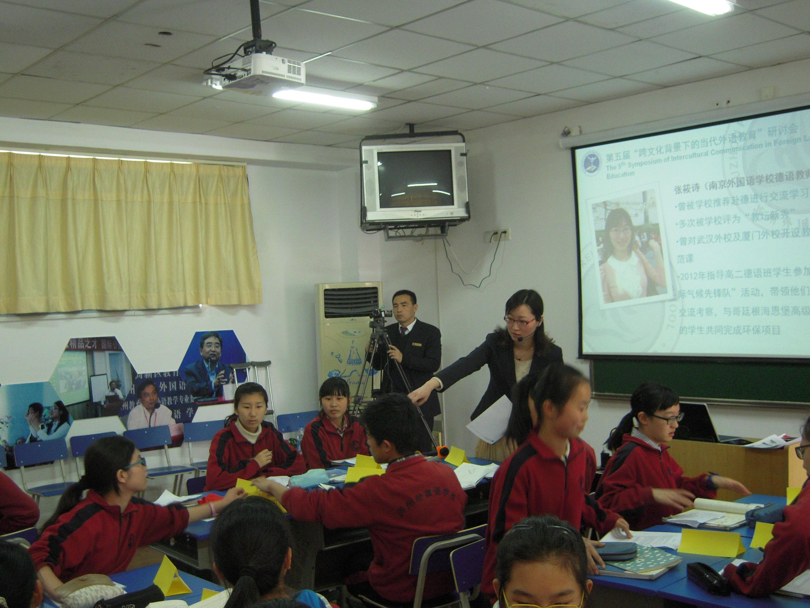 本次研讨会吸引了来自全国20个外省、直辖市近300名外语教学专家、领导、外语教师和苏州市近200名代表前去参会,同时共邀请国内13所著名中小学为与会代表呈现16节特色课程。我校德语组张筱诗老师也受到会务组邀请,在苏外初二德语班开设了一堂别开生面德语公开示范课。她以多种教学方法让学生在轻松愉快的课堂氛围中完成复活节、圣诞节,除夕,狂欢节等德国重要节日的学习,任务型教学方法的设置让学生听、说、读、写等多种能力得到极大地锻炼。在学到圣诞节这个节日的时候,她还带领学生们一起唱起了德国传统的圣诞歌曲。整节课内容充实而有趣,学生们玩的很开心,学得也很起劲。