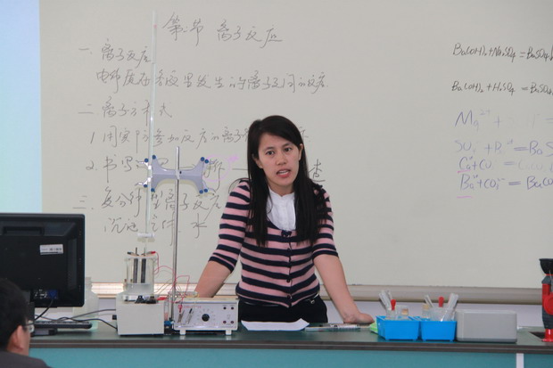 南京外国语学校的陈静老师和南京市中华中学的陈珂老师就高中化学必修1第二章第二节《离子反应》展开了同课异构。南京外国语学校化学教研组长、特级教师陈懿老师对两节课进行了精彩的点评,并就新课程理念下高中化学教学的有效实施展开了讨论。陈懿老师指出,这两节课设计思路不同,但都秉承了新课程理念,重视化学观念的构建,重视教师的主导作用,突出了学生的主体地位;有效地开展了实验探究教学活动。中华中学化学教研组长冯建龙老师作了《青年教师的专业成长》专题讲座,从思想、知识、能力等多角度多层次分析,帮助青年教师实现专业成长的高速、高效、高质。