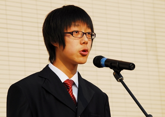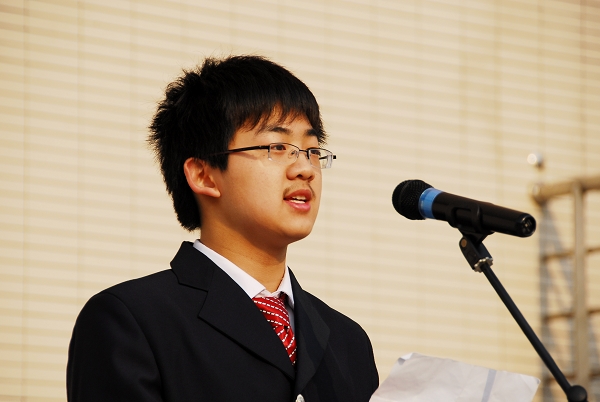 首先让我们欢迎高一(2)班的章泽天同学发言!