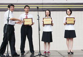 金秋传佳讯,捷报祝后人。首先,我有三个好消息要报告大家。第一,在刚刚结束的2010全国青少年信息学比赛中,我校高一年级的陈实、高二的吴尚、初三的贾志鹏三位同学艰苦拼搏,终于取得了全国一等奖金牌的佳绩,陈实、吴尚同学还进入了全国前10的行列,贾志鹏同学位列第11。在这次全国大赛中,江苏省共有位5位同学荣获了一等奖,我校有三人载誉归来。本月高一的谈海慈,高二的刘晓磻同学被选派参加2010中日女子数学奥林匹克竞赛,获得一银一铜的好成绩,7月15日,江苏省高中数学奥林匹克夏令营,我校继2007年获得该赛事第一后,连续三次获得团体第二。他们用自己的努力实现了为南外增光,为明天加油的追求。让我们用热烈的掌声向他们表示祝贺!向辛勤辅导、关心支持他们的老师表示热烈祝贺!