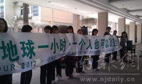 3月31日中午,为了倡导“地球熄灯一小时”环保理念,我校“绿色起义社”与南京