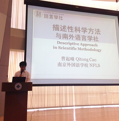 南外语言学社是完全由学生自发成立的学术性社团,以普及语言学基础知识和思想方法为目标。此次竞赛前,南外语言学社在全国组委会的协助下组织了校内选拔,并展开了一系列有针对性的训练。竞赛闭幕式上,社长曹起曈被聘为全国语言学大使,并做了有关语言学中科学思想的演讲。