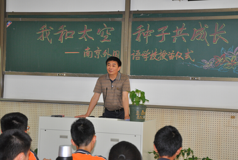 2015年6月11日,在南京外国语学校校园内举行了“对话航天英雄,我和太空种子共成长”太空种苗种植活动的授苗仪式。