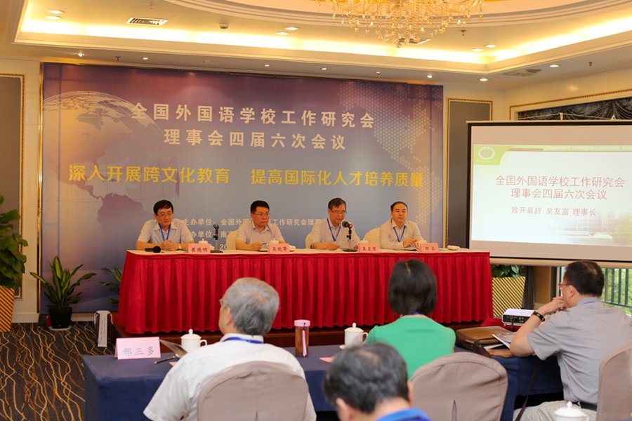 7月18日―19日,由我校承办的全国外国语学校工作研究会理事会四届六次会议在南京召开。本次会议的主题是“深入开展跨文化教育,提高国际化人才培养质量”,来自全国外国语学校工作研究会理事会的36位代表参加会议。