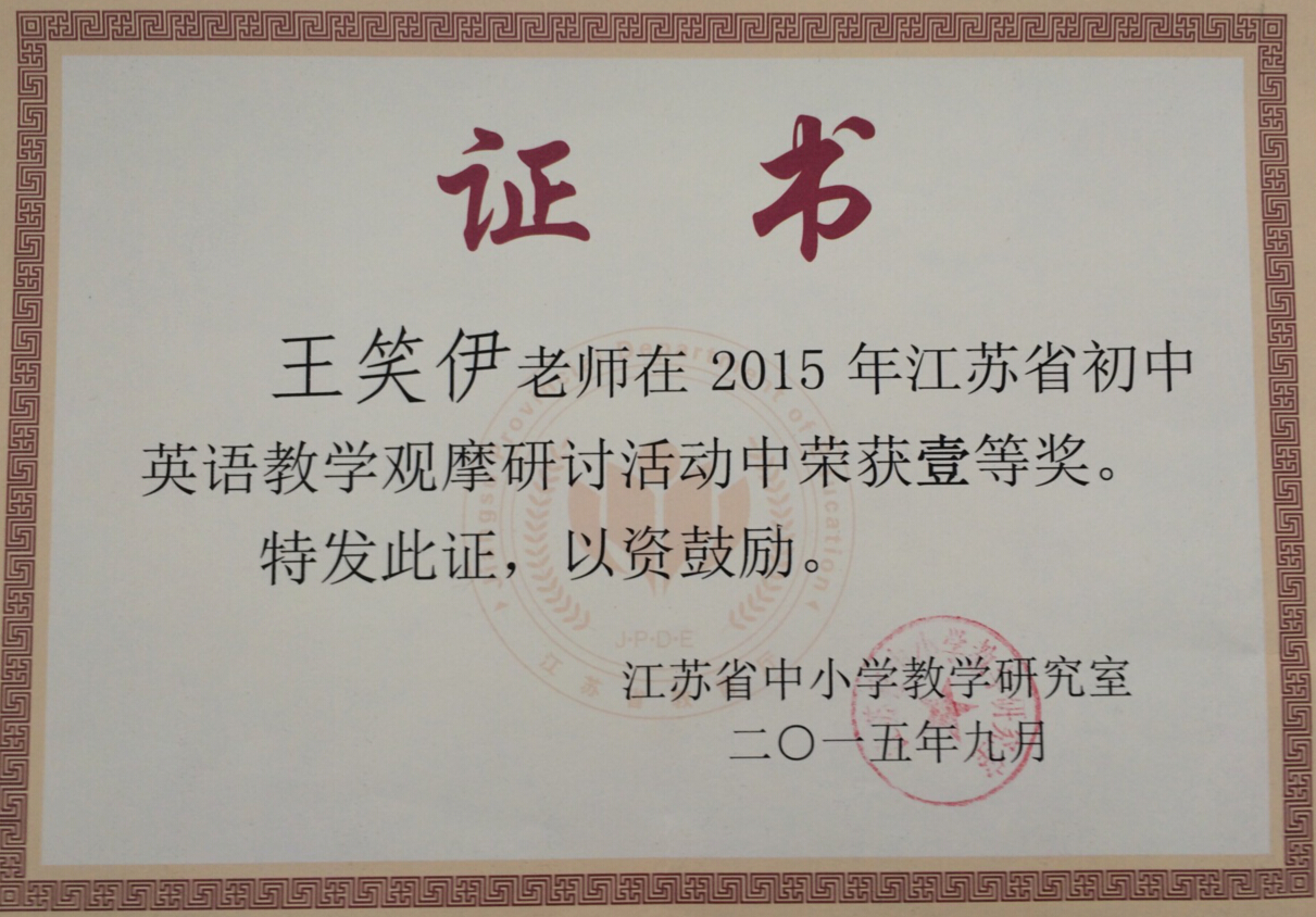 随后王笑伊老师将在11月代表江苏省参加全国初中英语教学观摩研讨会,让我们提前预祝她再创佳绩,为我校取得更大的荣誉!