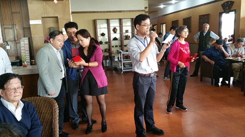 以邹正校长、刘前树书记、王瑞卿副校长、朱征副校长为代表的校领导前往活动现场,给离退休教师致以节日的问候,并且对60岁至90岁的寿星教师和钻石婚、金婚的教师送上生日的祝福,并颁发了“老有所为”奖。