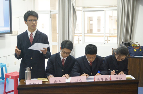 作为辩论赛中的观众,我觉得两班的辩手们都表现得十分优秀。辩论赛锻炼了我们的语言组织能力,活跃了我们的思维,加深了同学之间的友谊。同时,在赛前搜集资料的过程中,更可以获得了更多知识,丰富人的内涵。衷心希望有更多的同学能够参与辩论、热爱辩论!