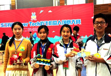 《南京外国语学校二队》队员王佳翼同学说:“回想参加2015江苏省Power Tech仿生机器人创意大赛的经历,让我体会最深的应该是“高强度的思维动手、极佳的默契合作、细节上的创新”这三个词。大赛从上午为时3小时的三个机器人的制作阶段,到下午环环相扣的接力,拖重,拔河三轮淘汰赛,紧张的时间使得精神和思维始终绷紧。接力时一个同校的队伍因为一个小小的螺丝没有上紧的原因遗憾出局,可见细节与速度需并重。比赛的高强度让人的能力得到最大的锻炼与发掘,一次次紧张的准备与晋级,仿佛攀登一级级台阶,十分精彩。“合作”更是一大关键词,经过比赛前多次制作训练,大家形成了熟练、默契的分工,比赛前一晚我们又再一次在一起确认了分工流程,保证了比赛制作过程中的流畅和高效。比赛时的调试阶段对团队合作提出了更高的要求,我队两名队员留下调试机器人,一名队员关注赛况进程,一名队员观察其他队的调试技巧,“偷学”一些小窍门。在最后的拔河四强比赛中,我们败给了冠军队,旁观冠亚军争夺赛时,发现双方都对机器人的脚底进行了创新的改造,使得承受力面积更大。这种细节的创新最终被证明是取胜最关键的地方,我们也输得心服口服,更将这一教训暗记于心,在统一的规则下对于细节之处的创新改造往往能造就奇迹,思维永远不该被约束。制作仿生造型的过程,是我们走进自然,尊重自然、学习自然的极好机会。万兽的流苏、虫虫和龙猫身上的小动物都是我们亲手制作的。回想参加这次创意大赛的经历,我所得到的锻炼与收获十分宝贵,我会格外珍惜这份美好精彩的记忆,衷心祝愿“Power Tech仿生机器人创意大赛”活动开展得越来越好。在被保送上海交通大学的选拔过程中,我把参加这次仿生机器人大赛的经历,写在了我递交给上海交通大学的个人简历里,面试时老师专门问了我,有关与这个比赛相关的许多问题。她将永远留在我的记忆深处”。2016年3月,王佳翼同学被保送到上海交通大学,祝贺她们!