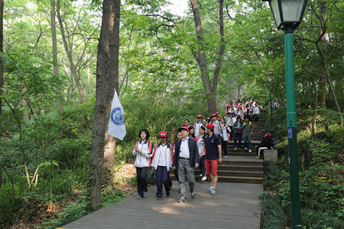 暮春时节的天气总是美妙的,才被雨水洗刷过的蓝天上挂着大团大团的云,阳光倾泻而下,蔷薇和杜鹃从绿叶中探出绽放的花朵。在这样一个日子里,我们中加国际高中的同学们加入了本部“春行钟山”的春游远足活动,于微风与晨光中启程,踏上了一段距离长达11公里的征途。