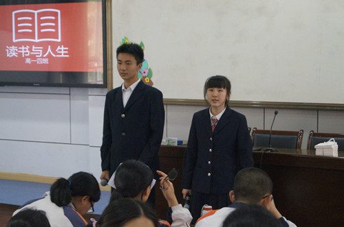 2016年5月18日下午3点,我校高一4班孔维玲老师在二楼阶梯教室召开了一节主题为“读书与人生”的班会课,同学们结合自己的读书体会和人生感悟向在场的老师们演绎了一场精彩纷呈的公开课,赢得台下老师同学的阵阵喝采。