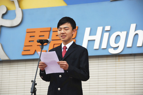 钱月涵:下面有请高一(2)班的程昊然同学谈谈他的看法。
