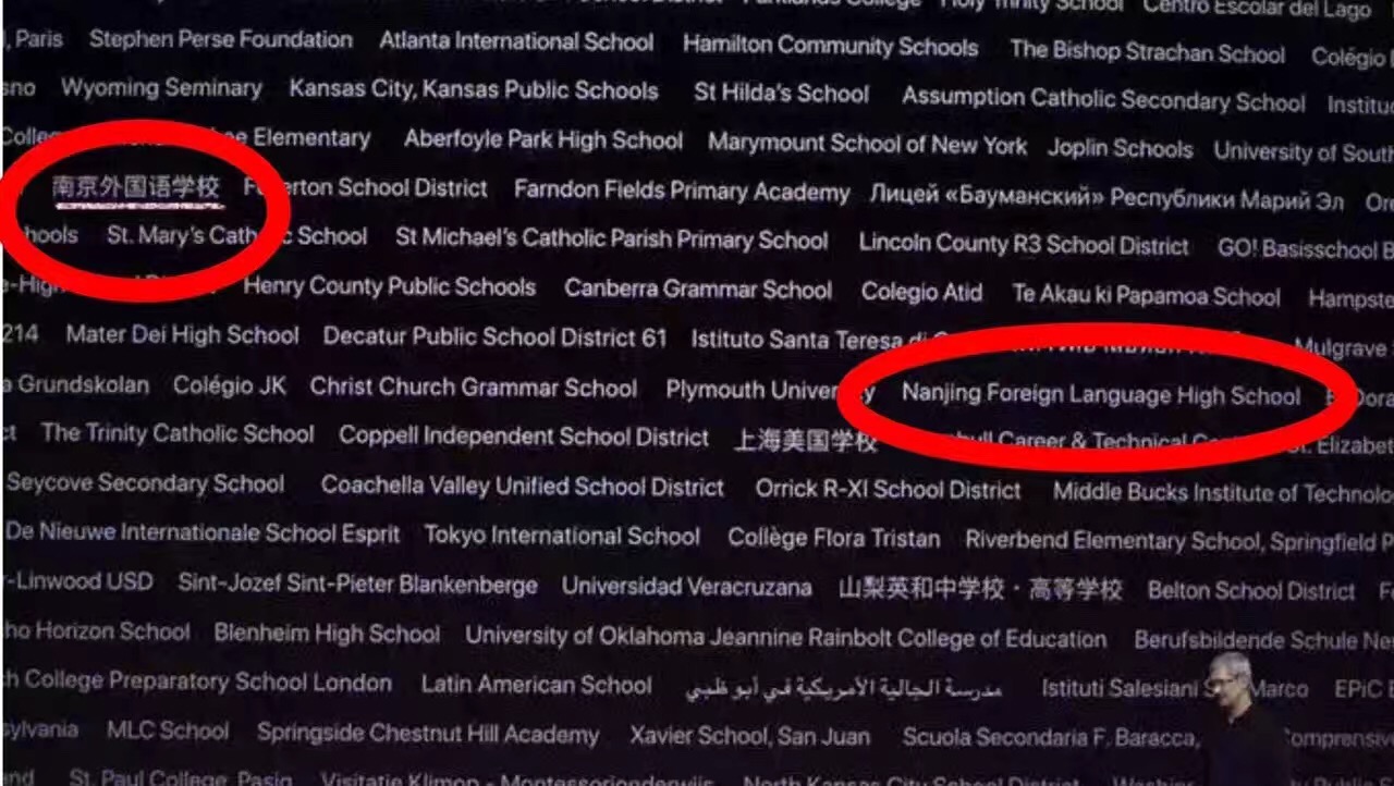 在今天凌晨举行的苹果新产品发布会上,很多眼尖的朋友发现,南京外国语学校出现在了频幕上。瞬间,“南外荣登苹果发布会”在校友中刷屏。