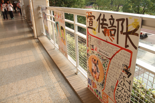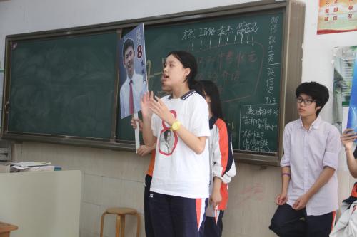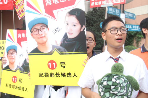 25对参与竞选的候选人使出浑身解数,继发放到班级的宣传册、全校收看的候选人介绍视频、施政纲领展示海报等种种介绍候选人及其工作设想之后,进行了全面的宣传造势活动。