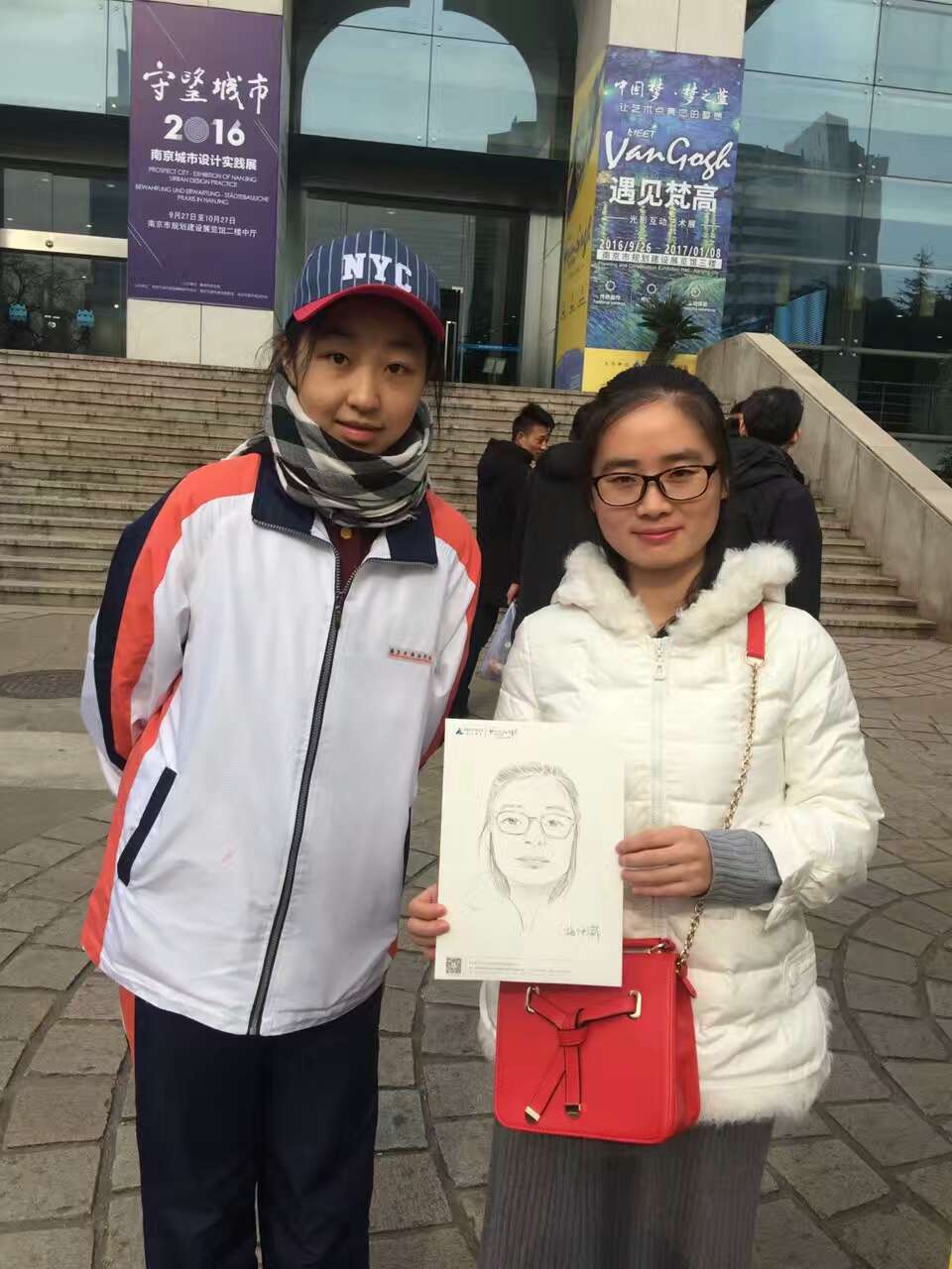20161210日,玄武门南京规划建设展览馆前寒风瑟瑟,但是这抵挡不住南外手绘社和动漫社的同学们做公益活动的热情。此次活动,学校艺术组受“遇见梵高”画展的主办方邀请,组织学生在南京规划建设展览馆前开展了专场绘画活动,为前来观展的游客免费画像,为“遇见梵高”画展添色。