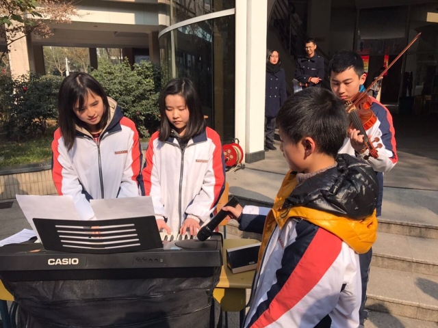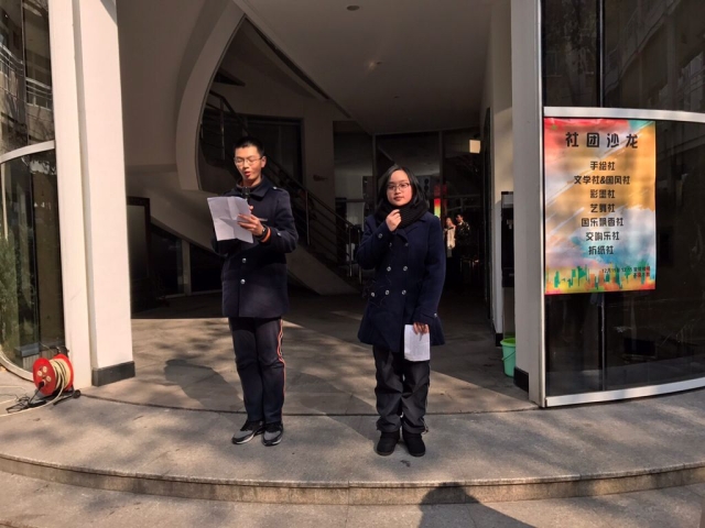 12月15日中午,旋转楼梯旁聚集着里三层外三层的同学,在这里,我校2016-2017学年社团沙龙活动正开展得如火如荼。瑟瑟寒风一刻不停地吹,却没有吹熄同学们内心的火苗,他们组织有序地依次上场,把精彩而别致的演出呈现给所有老师同学,也呈现给冬日的南外。