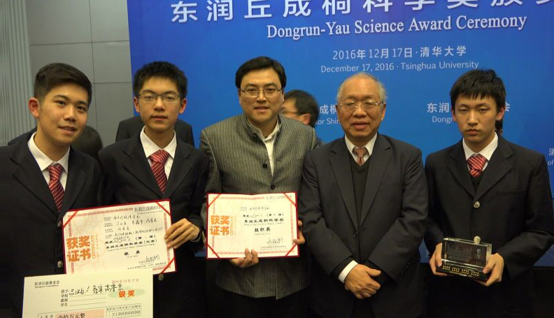 丘成桐科学奖由丘成桐教授与泰康人寿保险股份有限公司联合设立,该奖项面向全球华人中学生,舍弃试卷和标准答案,学生的作品以研究报告的形式提交。本届东润丘成桐科学奖的决赛评委由30余位世界顶级科学家担任,他们中不乏美国科学院院士、美国人文与科学院院士、美国国家工程院院士、波兰科学院院士等。经过两天封闭式面对面的交流和答辩,最终产生了各奖项。另有国内外知名高校的百余名专家学者参与了各奖项的辅导及评审工作。今年1月份启动的本届东润丘成桐科学奖,就有来自海内外的1153支队伍报名参赛。每个报名参赛的队伍都要提交研究题目和大纲,进行独立研究并提交研究报告。在经过三轮论文评审通过后才可进入决赛,而最后的总决赛他们将面对来自国际顶尖高校包括美、英、法等国在内的20多位世界一流的教授作为评审进行英文答辩,并最终由入围者中产生1名金奖、1名银奖、3名铜奖以及优胜奖、鼓励奖。可见竞争的激烈程度。
