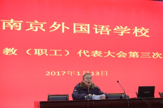 2017年1月13日下午,南京外国语学校在报告厅召开了第六届教职工代表大会第三次会议,王瑞卿副校长主持会议。