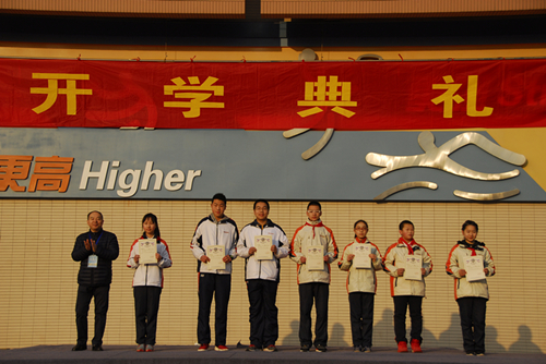 王校长为高中体育十佳颁发证书