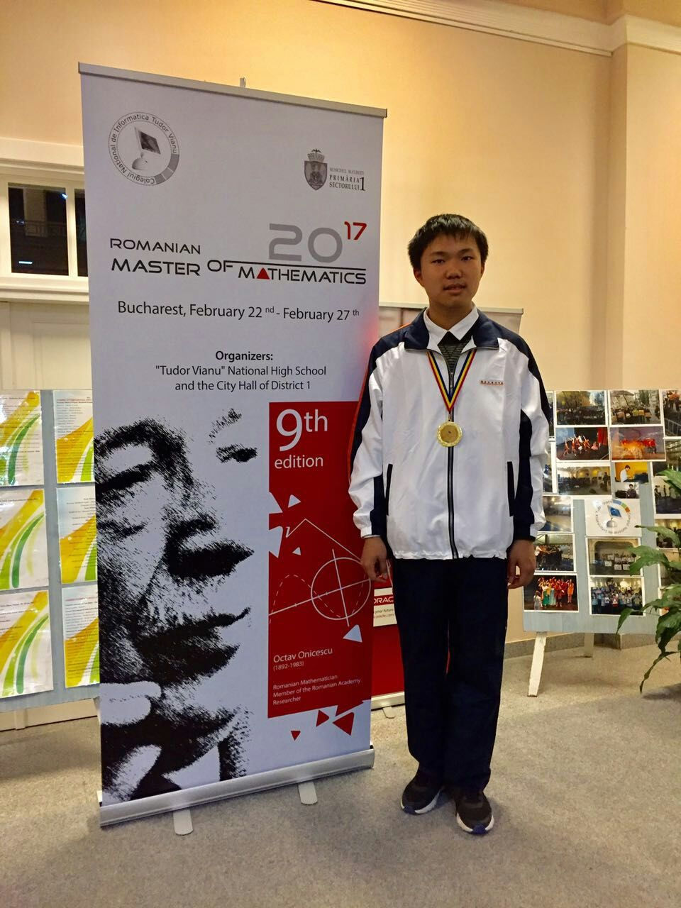 热烈祝贺我校丁力煌同学以唯一满分的优异成绩荣获2017罗马尼亚数学大师赛金牌第一名。以我校丁力煌,高轶寒,朱心一为主力的团队获得团体总分第三名的好成绩。