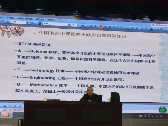 3月15日下午,在邹正校长主持下,李东平教授来我校为全体教职员工做了“STEM课程可以延伸我国现有高中课程的价值链”的讲座。