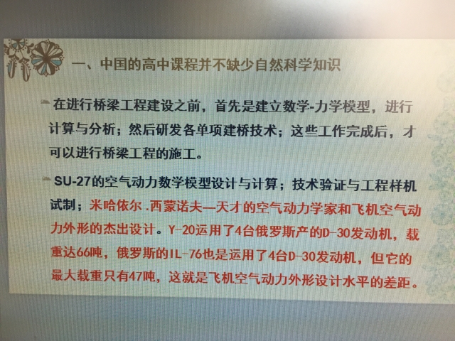 李教授以空气动力学对飞机研制的影响、最为核心的基带技术对4G移动通信的影响等为例告诉大家,自然科学课程和数学并不是我们中国高中需要改革和弥补不足的领域,但自然科学和数学在与技术和工程课程的衔接上,可能还需要进行一些配套性的改进。